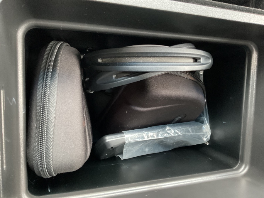 - Console, cooled with covered storage, large and small storage bins, dual cup holders, electronic climate controls and second row heated seat controls (inside console: auxiliary power outlet, two USB ports and auxiliary audio port), 110-volt outlet and auxiliary power outlet on the backside of console
